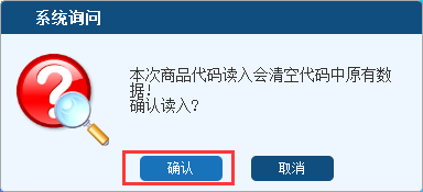 3.系统会提示“本次商品代码读入会清空代码中原有数据”,直接点击“确认”进行升级。