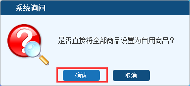 5.读入完毕后系统会提示“是否直接将全部商品设置为自用商品”,点击“确认”将所有代码设为自用商品,则商品代码库更新完成。